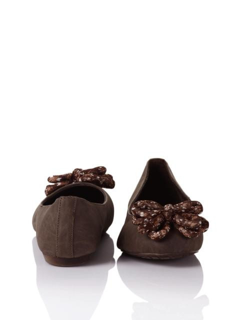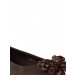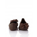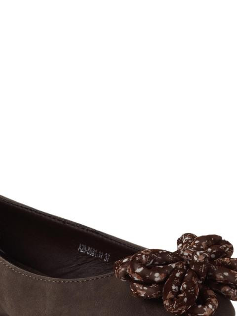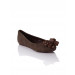 A pair of round-toed brown ballerinas with mid-top and slip-on styling