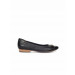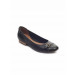 Blunt toed ballet shoe style upper with a buckle detail on the toe box, perforations on the sides and stitch detail at the collar