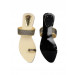 Open toed navy and gold-toned sandals, low-top and slip-on styling