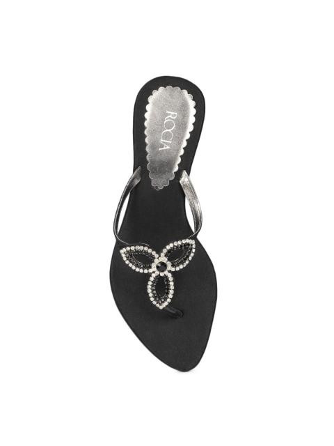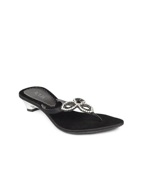 This pair of sandals for women from rocia is a dainty pair that will combine well with ethnic clothes. The black colour makes them suitable for special events and evening par