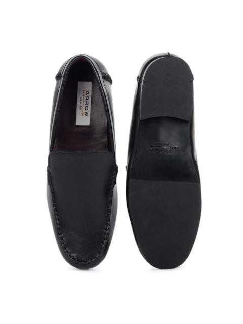 Leather loafers from arrow for men with a refined, stacked heel. A spin off of the classic penny loafers, this mid-top pair has a leather strap above its mouth. Wear this with semi-formal ensembles.