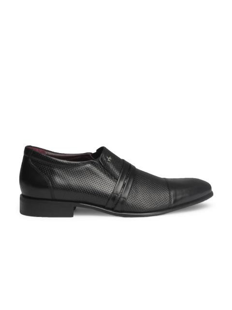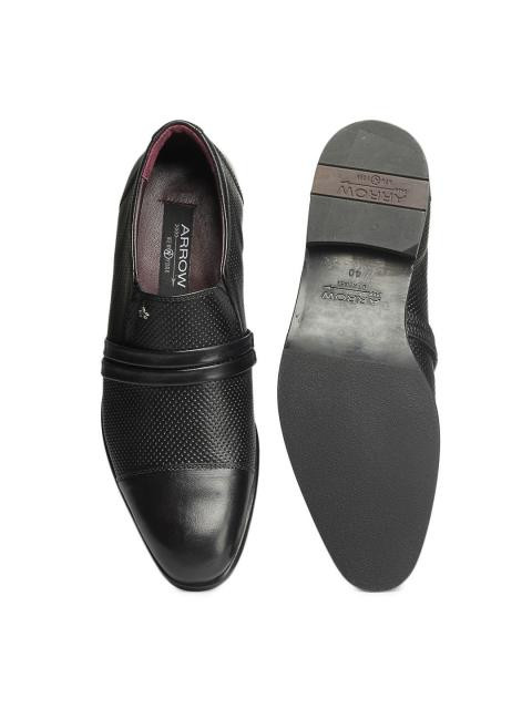 This structured shoe from arrow for men has a slim silhouette. The interesting cutouts referencing the classic Scottish brogue on this single buckle low-top pair, refines your formal look. With slick suiting or toned-down shirt and trousers, these shoes crafted from Italian leather add a definite panache to your ensemble.