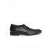 Black shoe with genuine leather upper with reinforced overlays on the midfoot and heel collar, perforations on the toe box for breathability, dotted cutouts on the midfoot overlay, brand button on the lateral side of the heel abd central lace up system