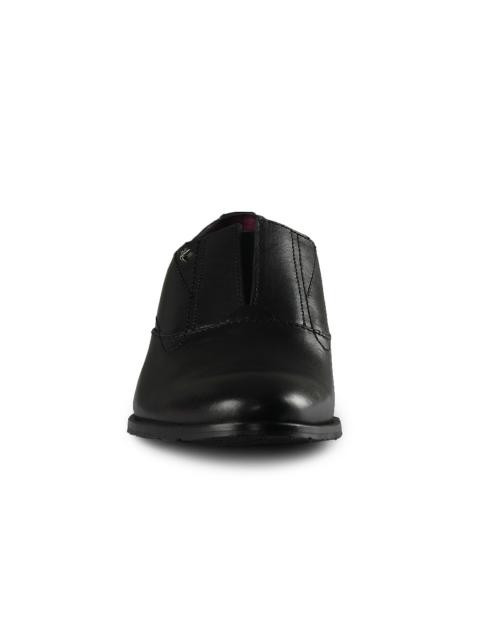Leather loafers from arrow for men with a refined, stacked heel. A spin off of the classic penny loafers, this mid-top pair has an elasticated split above its mouth. Wear this with semi-formal ensembles