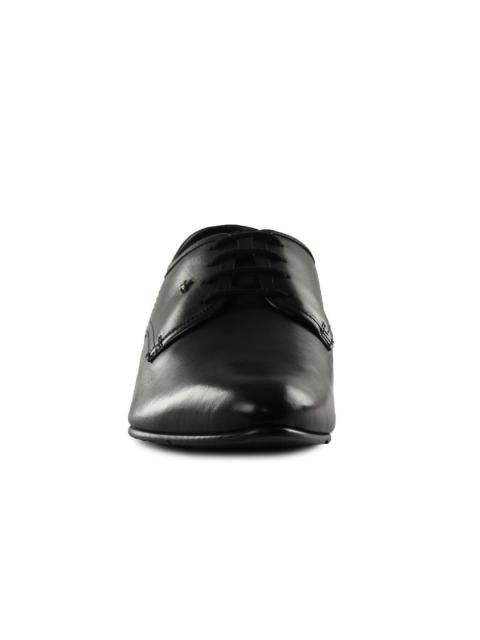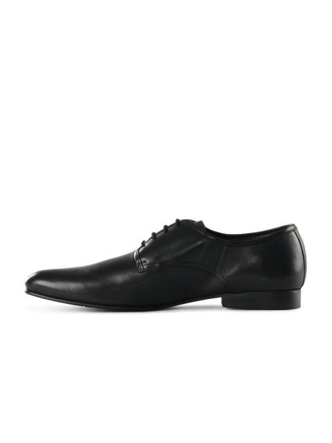 Classic four-hole lace-up shoe with clean, slim silhouetting and a refined stacked heel, by arrow for men. Strategic stitch detailing on this narrow derby shoe is a sartorial dream. A minimalist's reinterpretation of the classic Derby, wear this shoe crafted from Italian leather with slim Fit formal shirts and trousers.