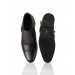A pair of round-toed, brown formal shoes with slip-on and low-top styling
