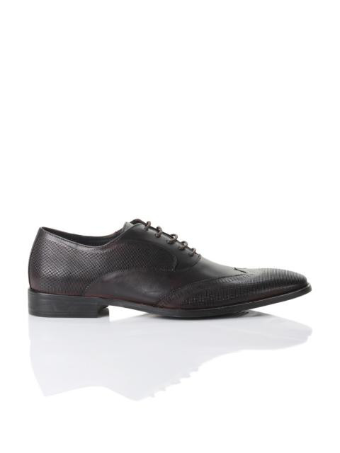 Leather upper with overlay and stitched detail, has brogue detailing throughout