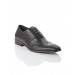 A pair of round-toed, brown formal shoes with central lace-ups and low-top styling
