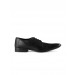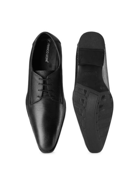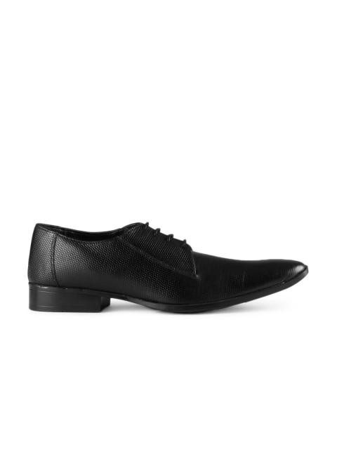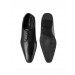 Pointy toed black Derby shoes, has central lace-ups, low-top styling