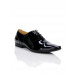 Patent leather upper with a pointed toe cup