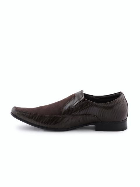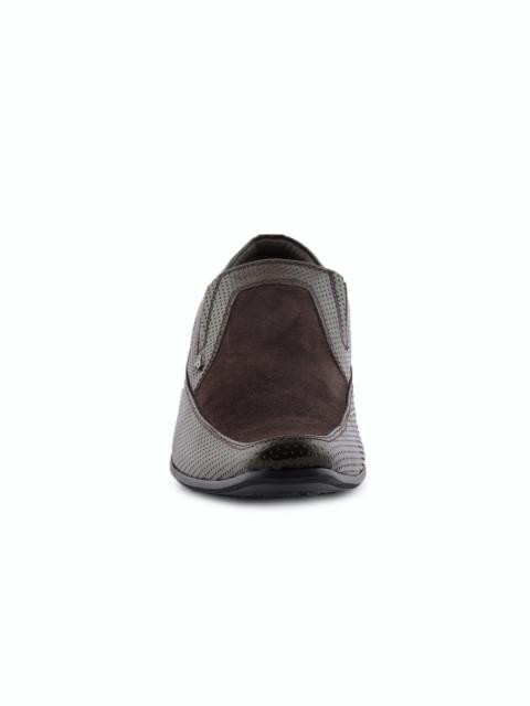 Textured leather loafers from provogue for men with a refined, stacked heel. For the debonair who pushes the sartorial envelope as much as he can. The busy dotted texturing on the upper is balanced with a suede overlay on the toe box. Style this with flat front trousers, a tonal blazer and a crisp shirt.