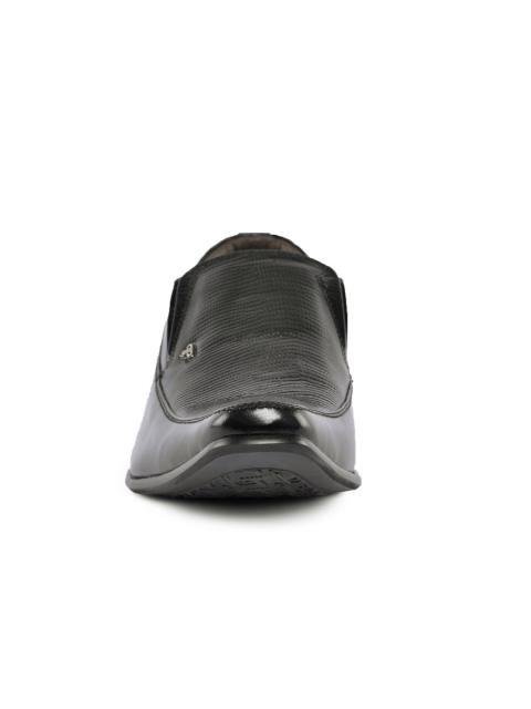 This textured leather loafer from provogue for men with a refined, stacked heel is designed for the debonair who pushes the sartorial envelope as much as he can. The busy dotted texturing on the upper is balanced with a suede overlay on the toe box. Style this with flat front trousers, a tonal blazer and a crisp shirt.