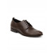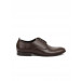 Brown derby shoe with perforations on the toe box, central lace-ups and a haul loop at the heel collar