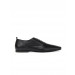 Pointed square toed, black formal shoes with central lace-ups and low top styling