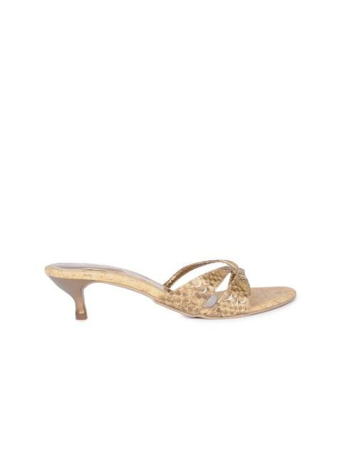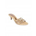 Beige footbed with a copper heel patch and a kitten heel