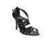 Pointy toed black sandal with forefoot and midfoot straps
