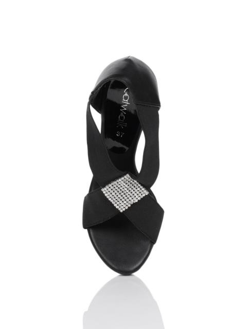 Elasticated criss-crossing straps with a heel cup at the heel collar