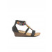 Blunt toed mini-wedge sandal with a forefoot strap and an ankle loop (also has a heel cup)