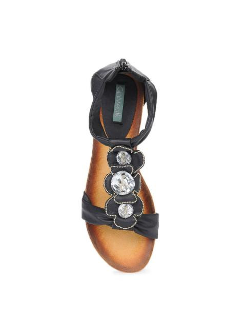 Floral and crystal embellishments connecting the forefoot strap and the ankle loop