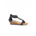 Blunt toed mini-wedge sandal with a forefoot strap and an ankle loop (also has a heel cup)