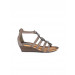 Blunt toed mini-wedge sandal with a forefoot and midfoot straps