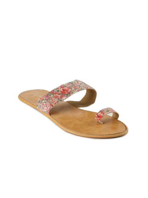Vintage floral print on classic Indian sandals from catwalk. The brand combines a minimal style with classic vintage with this pair. Wear this with boho ensembles or with ethnic wear.