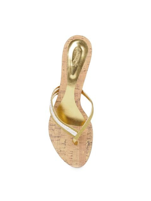 Tapering toed sandal with golden thong style straps (with shimmer details)