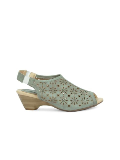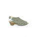 Mint green upper with cutouts referencing the clog style with a buckled ankle loop