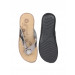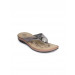 Tapering toed sandal with metallic grey thong style straps with an embellishment at the apex of the straps