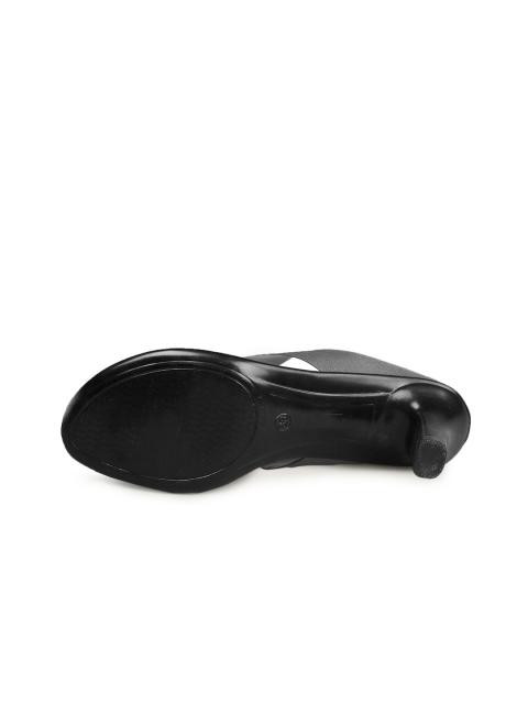 These formal black leather heels from catwalk are perfect for formal occassions. Its simple design gives a well groomed look, completing the outfit. It goes well with black pants for office meetings and for brunching with the boss.