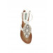 Blunt toed mini-wedge sandal with thong style straps and a buckled ankle loop