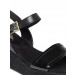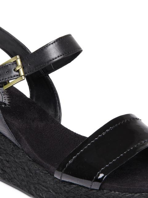 Leather upper, has a patent leather strap with stitch detail across forefoot, backfoot strap with an ankle loop and an adjustable buckle closure