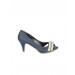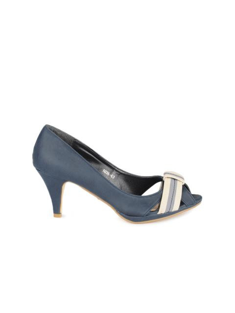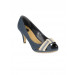 Peep-toed blue heels with slip-on and low-top styling