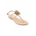 Leather T-straps with a toe separator, stitch to the midfoot sides and has a flowerlet on the centre