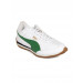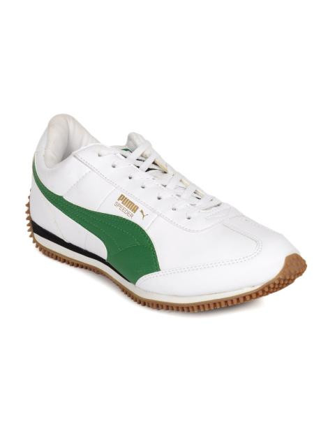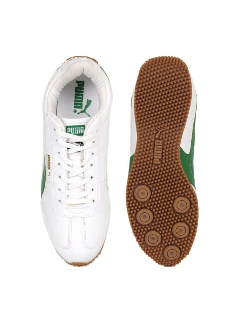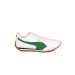 Synthetic upper with overlays, green form stripes along the side of the shoe, branding on the tongue, in the midfoot region and heel collar, reinforced overlay at the heel collar