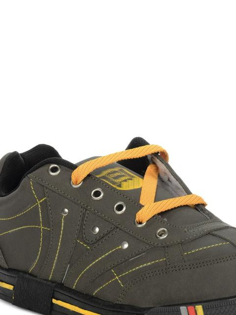 Synthetic upper with stitched detail, overlays and reinforced overlay at the heel collar and around the toe box