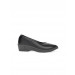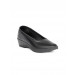 Black slip-on shoes, pump shoe style shoe with wedge heels, round, blunt toed shoe