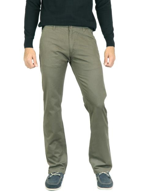 Moss green trousers made of 100% cotton, has two front and two rear button-fastening pockets , and a zipper with button fly