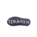 Brown felt upper sole with grey leather upper, graphiti on the sole and white stitches bordering the casual foot wear
