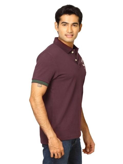 Stylish to the hilt, this burgundy sporty t-shirt from indian terrain is a great addition to your wardrobe. Be the cynosure of all eyes in this stylish Riley tee with its contrast coloured cuffs from the brand's Must Have's collection, while the cotton fabric keeps you fresh and comfortable all day. The ribbed sleeve cuffs sit snug on well toned arms, and the vented hem offers a comfortable Fit around the waist. Pair it with denims or corduroys and suede shoes to look like the king of casual wear.