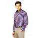 Royal blue full sleeves shirt with red and white stripes, made of 100% cotton, has a patch pocket on the left chest and full front buttoned placketWash care