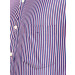 Navy blue and white striped shirt with red accents, made of 60% polyester, 40% cotton, has a tipped collar, front buttoned placket, full length sleeves with buttoned cuffs, pocket on left chest and a curved hemline