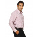 White shirt with red stripes and black accents, made of polycot, has a tipped collar, front buttoned placket, full length sleeves with buttoned cuffs, pocket on left chest and a curved hemline