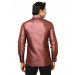 Reversible shirt in reddish bronze and maroon, made of a cotton blend fabric, with a tipped collar, front buttoned placket, full length sleeves with buttoned cuffs and a curved hemline
