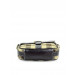 Flap with a strap and buckle detail with a magnetic press buttoned closure
