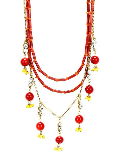Ivory Tag Women Sparkling Coral Red Necklace