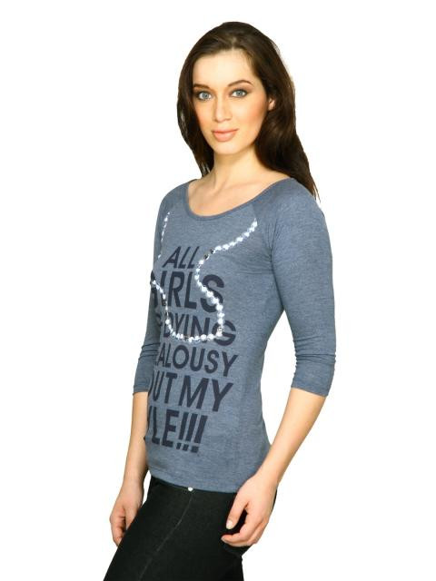 Don the boho chic look in a really cool way with this trendy t-shirt from jealous 21. The graphic print of the pearl chain adds to this top a stylish vibe, while the fabric keeps you fresh and comfortable all day. Pair it with denims and heeled sandals for maximum style.