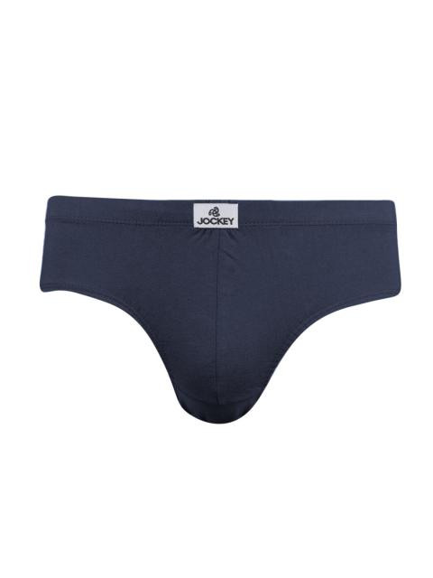 Navy blue Modern Classic Rio brief, is made of a soft absorbent fabric, has a double layered contoured pouch designed for maximum support, higher contoured leg opening for easy leg movement, full back coverage for comfort, soft and covered elasticated waistband