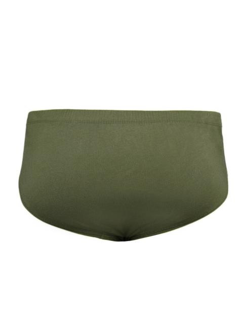 Olive green Modern Classic Rio brief, is made of a soft absorbent fabric, has a double layered contoured pouch designed for maximum support, higher contoured leg opening for easy leg movement, full back coverage for comfort, soft and covered elasticated waistband