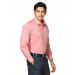 Pink shirt made of cotton-polyester blend fabric, has a tipped collar, front buttoned placket, full arm sleeves and pocket on left chest